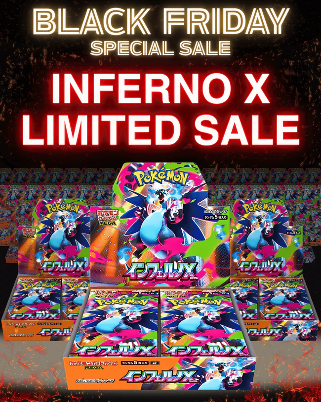 Celebrate Black Friday with INFERNO X, our limited-time Japanese Pokémon card release. This product is perfect for both collectors and players who want to experience the excitement of opening genuine Japanese booster packs straight from Japan.
